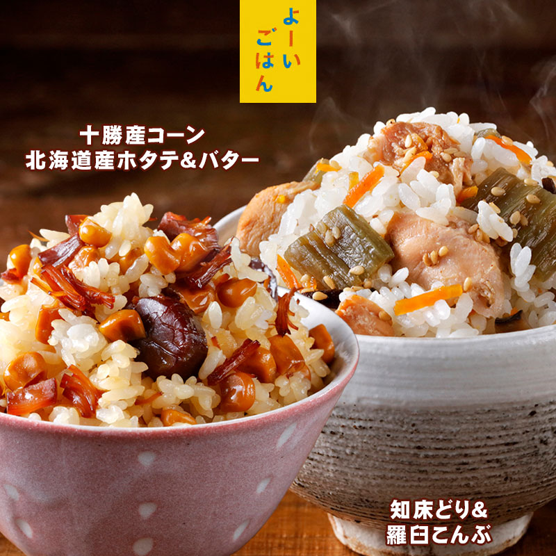 北海道十勝産のとうもろこしと相性の良いホタテの混ぜご飯の素。