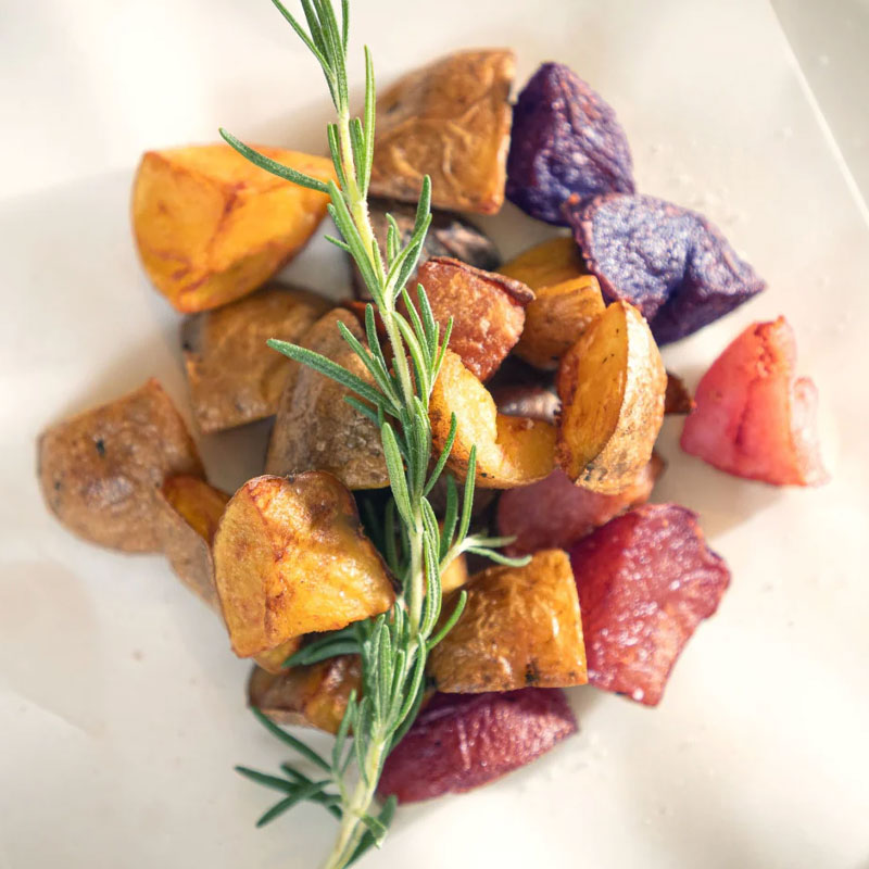インカのめざめ、シャドークイーン (紫色)、ノーザンルビー(ピンク)を乱切りにして、それぞれ50% 25% 26%の比率でブレンドしました。