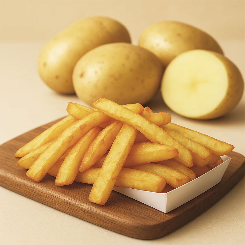 北海道ヨシロ」を使用。 180℃の油できった色になるまで揚げて、カリカリホクホクのシューストリングポテトを召し上がりください。