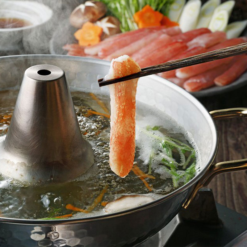 「蟹」をはじめとする新鮮な海の幸をむき身・スライス加工し、しゃぶしゃぶ 用に生の素材で取り揃えました。