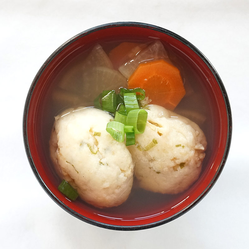 長万部の浜の母さんが考案したホタテ貝のつみれ汁です。