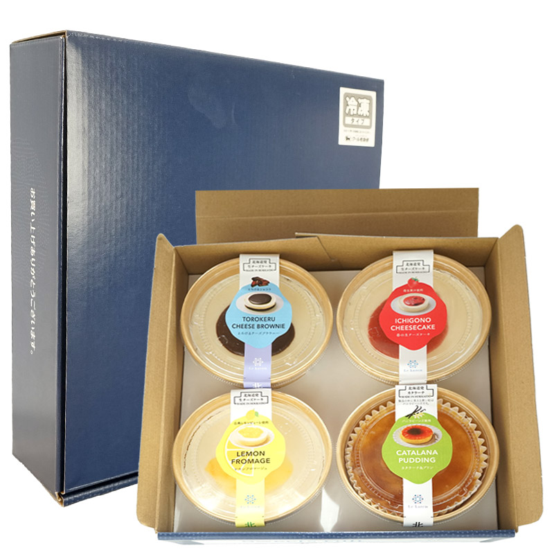 | 内容・規格 | 4個セット(いちごの生チーズケーキ/カタラーナ&プリン/とろけるチーズブラウニー/れもんフロマージュ)各1個 |