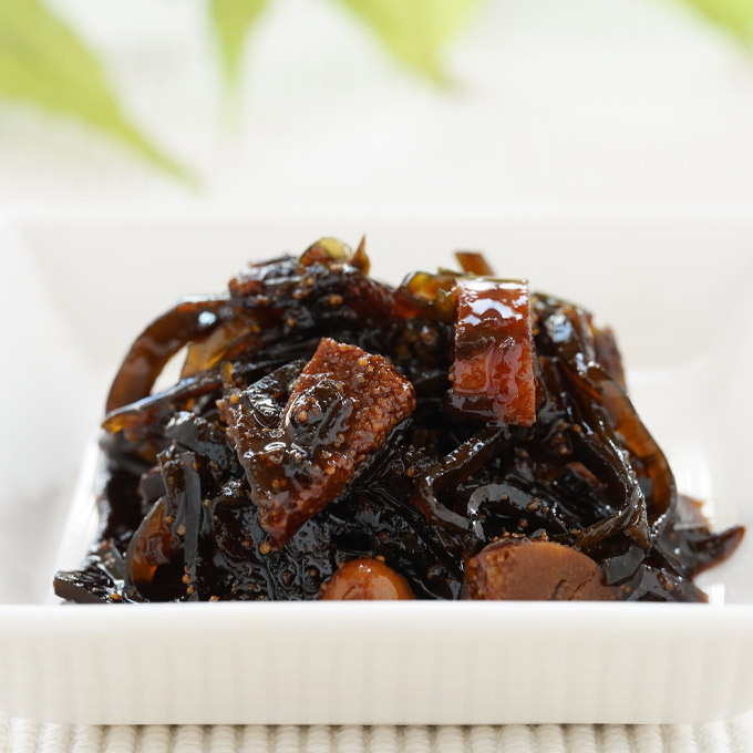 国内産の細切り昆布に北海道産たらこをたっぷり加え佃煮にしました。ほんのり「シソ」の風味が食欲をそそる一品です。